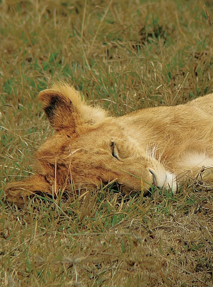 群れの中で無邪気に眠る子ライオン。狩りの最中に好奇心を抑えきれず、大人に叱られる姿も。 Ayumi Kusumi