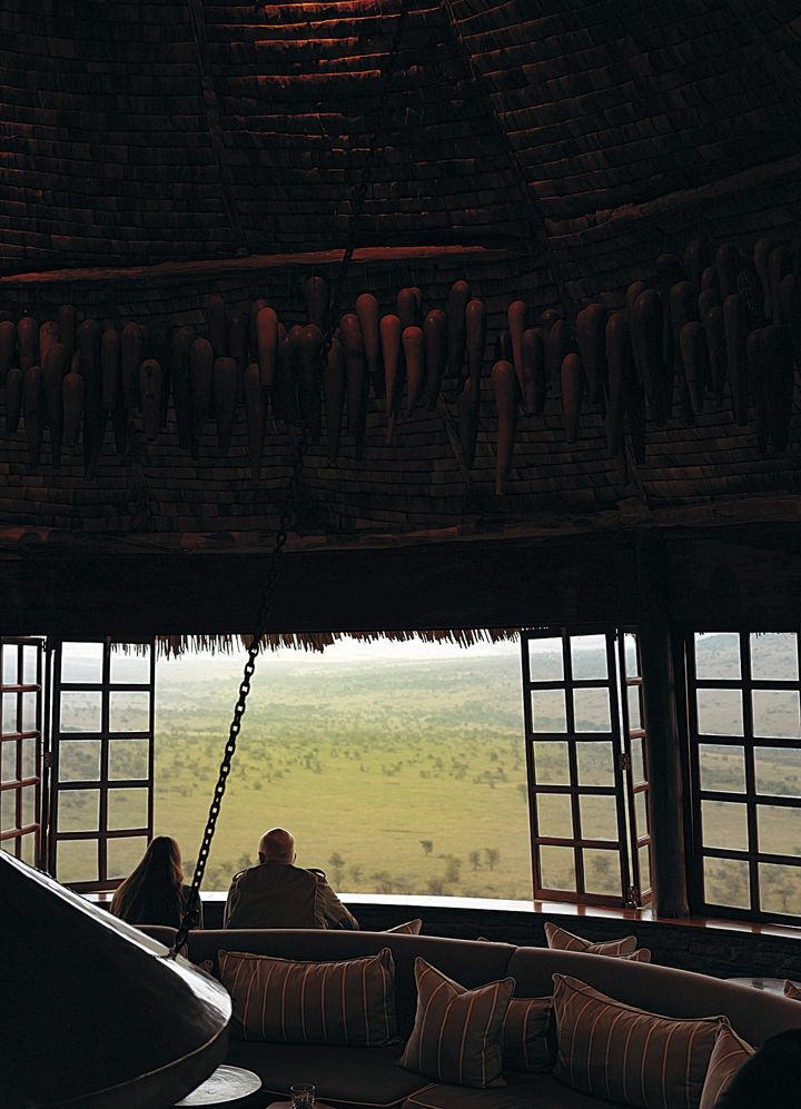 ラグジュアリーサファリブランドの「&Beyond 」による今回の旅。サバンナを一望するホテルのバー。 Ayumi Kusumi