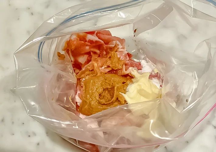 2つ目は、マヨネーズの力を借りた『下味冷凍』のワザです。