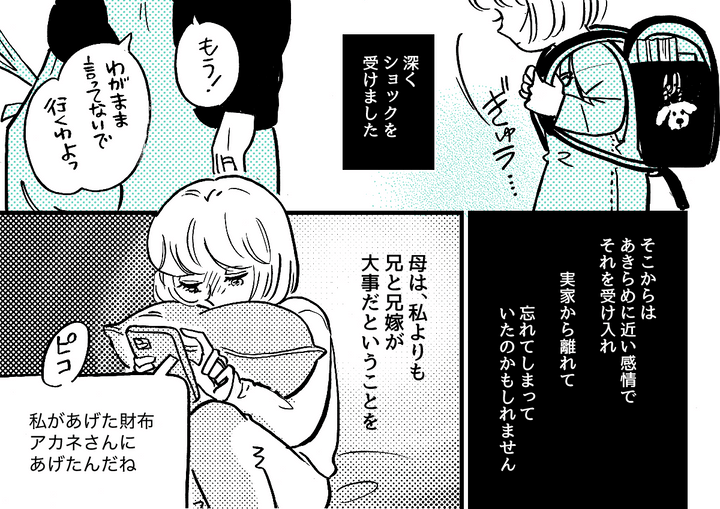 <7万の財布、義姉に!?>思い出した幼き日の記憶「母は私より兄が大事」悲しいね…【まんが】