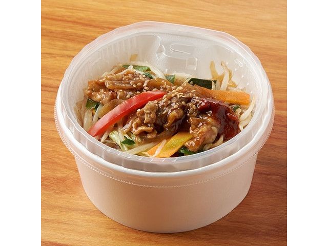 甘めのチャプチェ、プルコギを野菜などと一緒に彩りよく盛り付けたプルコギ丼です。
