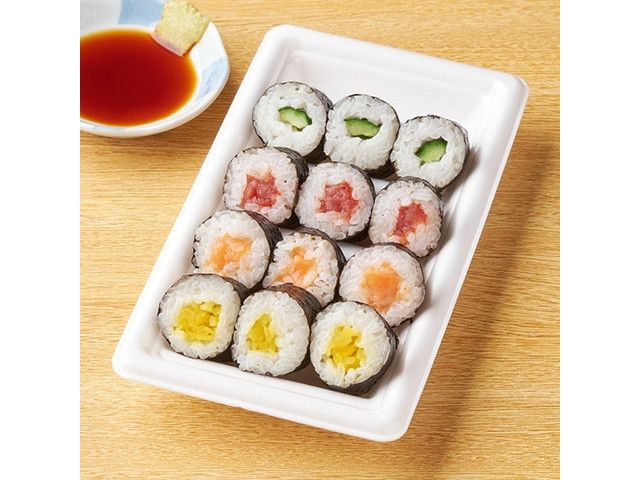 バラエティ豊かな4種類の巻寿司が楽しめる、一口サイズのお寿司セットです。