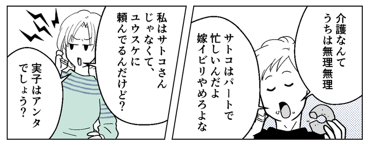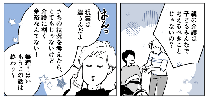 「姉さんは派遣で時間がある」「夫婦で交代すればいい」などと、まるで他人事のような言い方ばかりで私は憤りを覚えました。