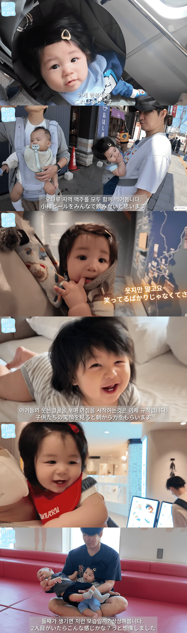 最終日、空港に行く途中に子供スペースに寄り、身体をほぐしたハルちゃんと知人の赤ちゃん。シム・ヒョンタクが2人を同時に抱っこしたシーンでは、「シム氏が二人子供を抱っこしているのが不思議でした。2人目がいたらこんな感じかな?と想像しました」と、サヤさんによる字幕が表示され、第二子を期待させた。