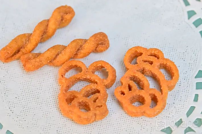 なんと、ミッキーマウスとミニーマウスの形をした、パスタスナックが入っていたのです!