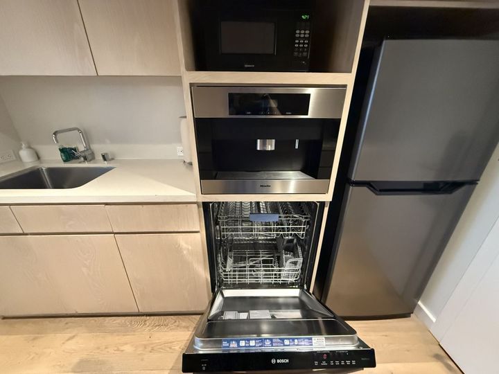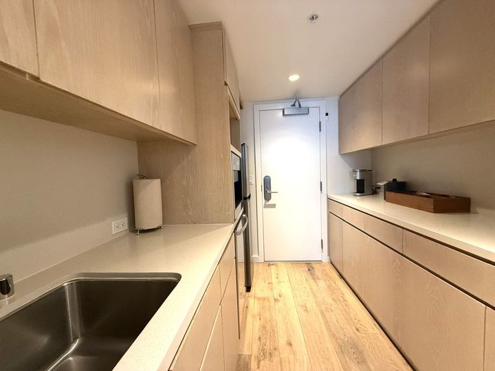 ホテルで1室のみのペントハウス・スイートには、シンク、電子レンジ、大型冷蔵庫、食洗機、ドリップコーヒーメーカーを備えたギャレーキチネット(コンロなし)を完備。