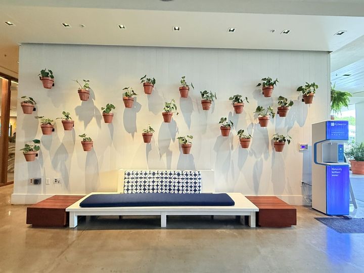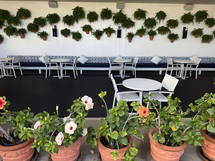 プールやプールバーに近いこのエリアは、壁一面に多数の鉢植えが飾られ、フォトジェニックでありながら自然を感じられる空間となっています。