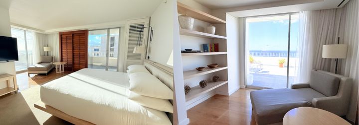 ベッドルームは1室ながらバルコニーに囲まれ、青い空と海を一望できます。ハワイに滞在していながら、外に出るのが惜しくなるほど、部屋でゆっくり過ごしたくなる特別感のある客室です。