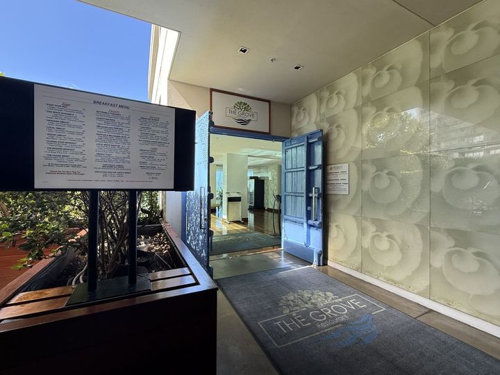 また、朝7時30分から11時の朝食のみ営業する「The Grove Restaurant」では、卵料理(「オムレツ」 $23~、「エッグベネディクト」 $23~)をはじめ、「パンケーキ」$19~、「ワッフル」$20~、「フレンチトースト」$20)などの定番メニューが揃います。しっかり食べたい方には、「ロコモコ」や「ブレックファーストブリトー」各$23もおすすめです。