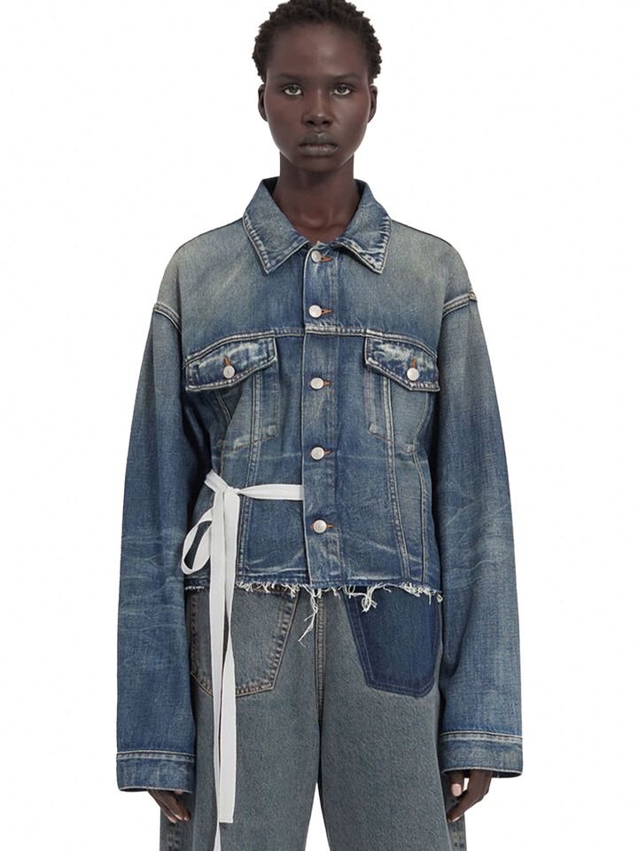 カジュアルな印象が強いデニムだが、この春はペプラムデザインやウエストベルト付きのものなど、美しいシルエットを演出できる一着に注目。リボンやフラワーモチーフのボタンなどガーリーなディテールも、ドローストリングやダメージ加工、デニム・オン・デニムのスタイリングで甘さを中和するのが今季のムード。