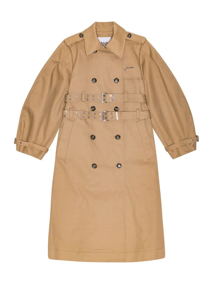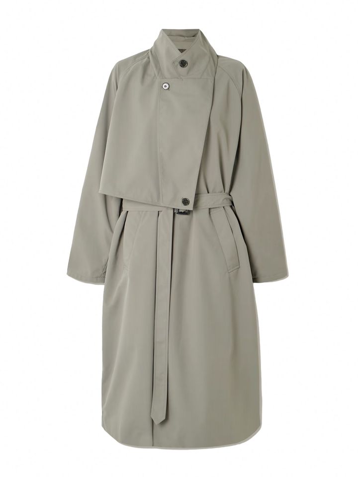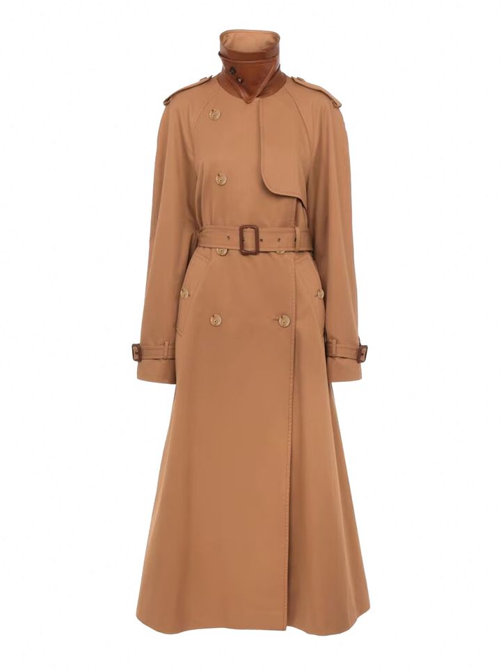 そこで注目したいのが、個性が光るディテールや素材使いだ。クラシックデザインにとどまらず、襟もとにレザーのアクセントをあしらったり、ダブルベルトでウエストをマークするなど、さりげないひねりを効かせたデザインで、トレンチコートはより自由でモダンな存在へと進化している。