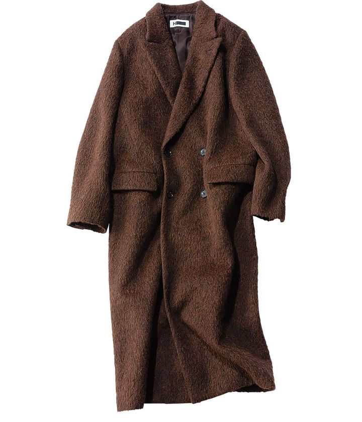 茶はボトムスよりアウターで効かせるのが気分。特に濃い茶を選ぶと黒にない柔らかで優雅な表情になります。