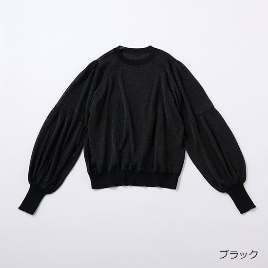 大人が着やすいトレンド「シアー」ニット。形はシンプルですが、袖のボリューム感やキラキラとしたラメの質感など素材にもこだわり、大人でも恥ずかしくない絶妙なシアー具合が魅力です。インナーに悩まない同色のキャミソール付き。ほんのり透けるシアーニットは、キラキラとした微粒のラメコーデを底上げ。手首を華奢に見せる袖口のリブ、ポワンと膨らむ袖のバランスにもこだわりました。