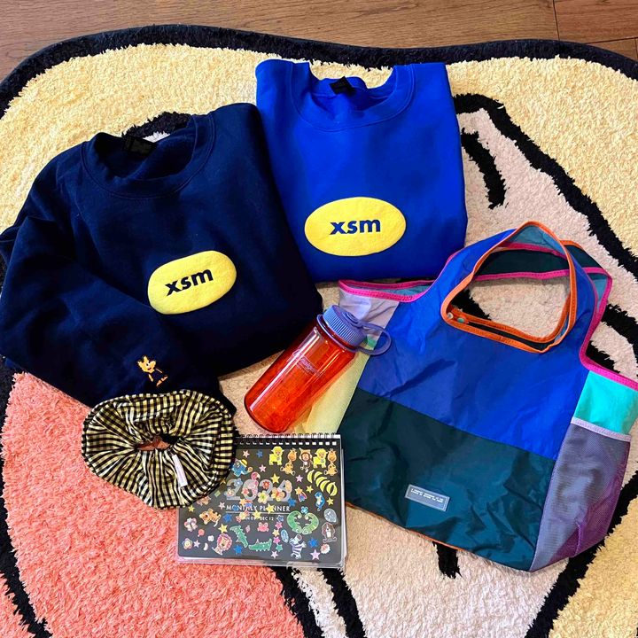 友達のケイトがデザインをしているxs marketのスウェット。同じデザインのTシャツを持っているのですが、このネイビーに黄色の配色がかなり使いやすいんです。ネイビーってこんなに肌を綺麗に見せてくれるんですねえ。