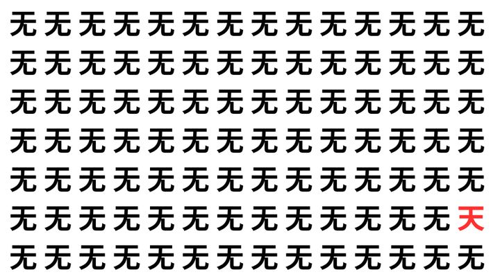 たくさんの「无」の中に、よく似た別の漢字が1文字だけ隠れています。