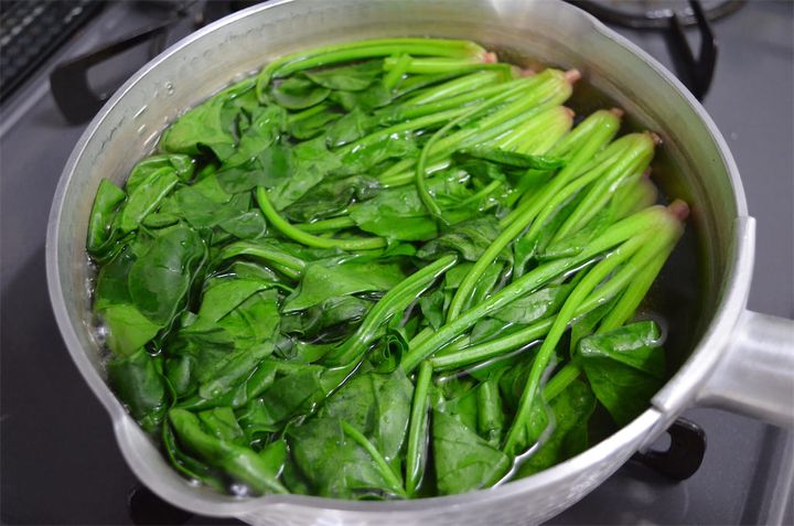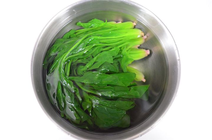 1. ほうれん草は茹でてから、15分水に浸けてアクを抜く。