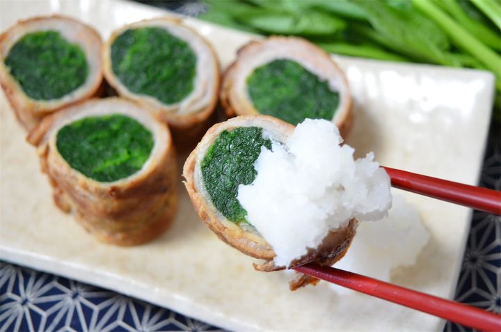 おかずの定番「肉巻き」は、夕食の献立やお弁当に大活躍!便利だけど、最近味付けがマンネリ気味になっていました。そんなとき、岐阜県の農家さんから「ほうれん草の肉巻き」を教わったのですが…なんと、味付けを「しょうが焼き」風味にしちゃうんです。その発想はなかった〜!大根おろしをたっぷり添えるのもユニーク。無限に食べられそうな予感ですよ♪