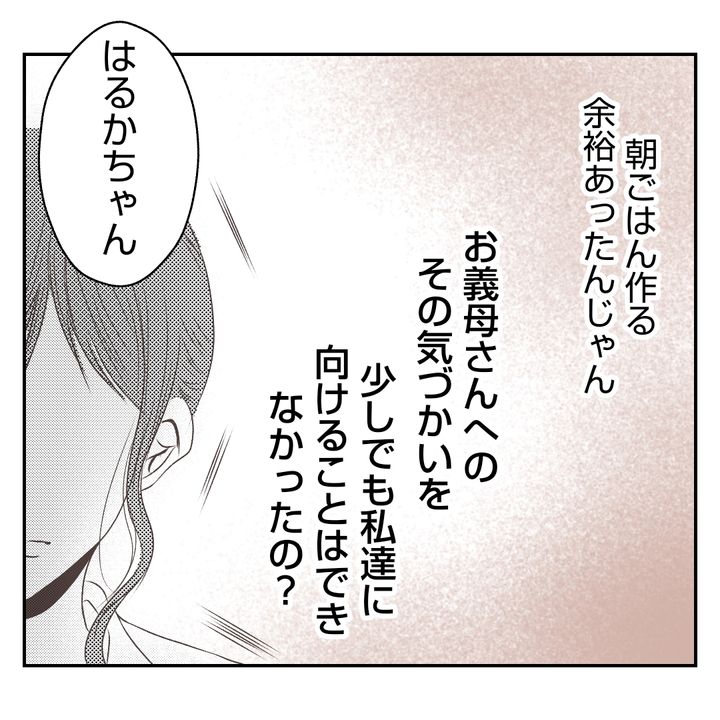 朝起きると、義姉によってはるか宅のキッチンがグチャグチャにされていた。そのくせ、義姉は自分の親には朝ご飯を作って気を遣っている。実の親に気を遣えるのなら、自分たちにも少しでも気を遣ってほしい。それがはるかの本音だった。ベーカリーの仲のいいスタッフに義姉のことを話すと、「ヤバそう」と驚かれてしまう。