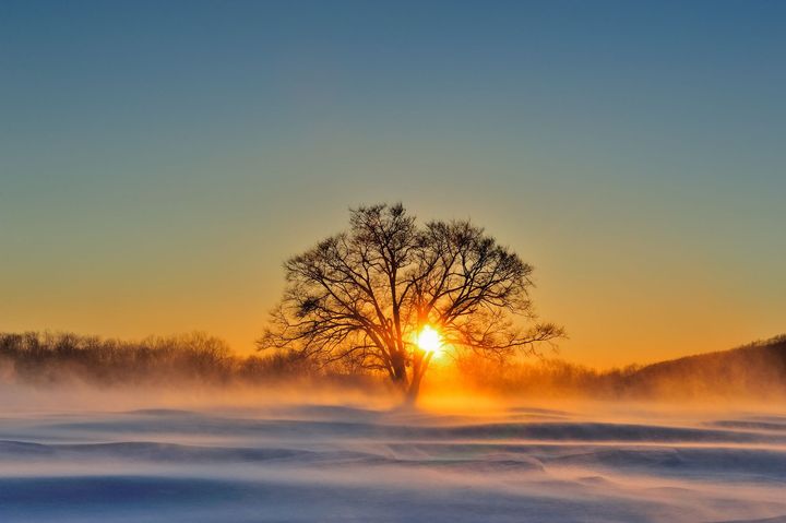 夏の葉が生い茂った生命力あふれるハルニレも美しいのですが、オススメは冬の日の出です。