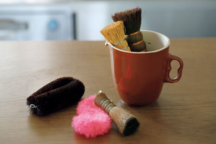 洗い物に使うのは小判型や棒状の棕櫚(しゅろ)のたわし。