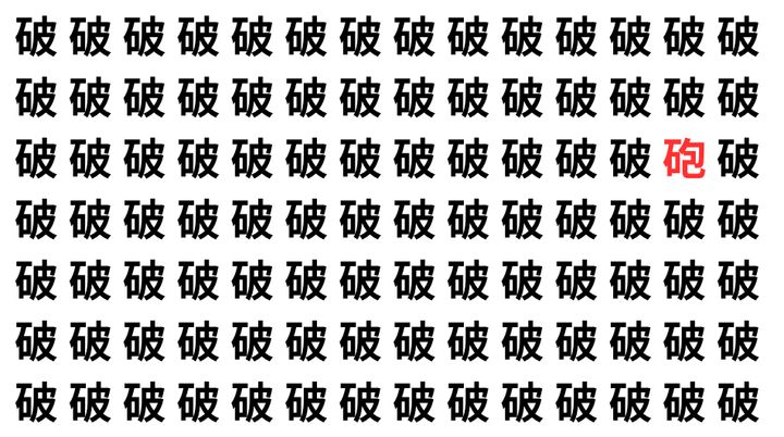たくさんの「破」の中に、よく似た別の漢字が1文字だけ隠れています。
