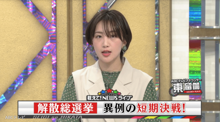 【TVer】アシスタント・東留伽アナがABCテレビ退社をSNSで発表 真冬の解散総選挙の解説をサポートする姿をリプレイ
