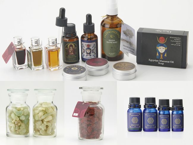 お香だけでなく、バームやマッサージオイル、ミストなど日常に使いやすいアイテムがラインアップしているので、自分のお気に入りを見つけられそうです。また、エジプトで育った花や植物を贅沢に使ってつくられるオイルは4種類がスタンバイ。ウッディ・オリエンタル・シトラス・スパイシー・フローラルなどの様々な香りの中から好みのものを選んだり、使用目的でチョイスしたり、迷ったときはお店の人に相談するのがよさそう。