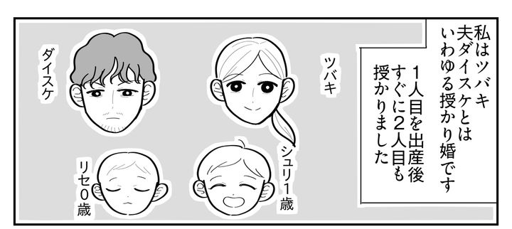 私はツバキ。夫ダイスケとは、長女のシュリ(1歳)を妊娠したことがきっかけで結婚しました。そして出産後はあまり時間を空けずに再び妊娠して、次女のリセ(0歳)を出産しました。可愛い子どもたちと過ごす毎日はとても幸せです。しかし私は、最初の妊娠のときに体調不良などの事情が重なり会社を辞めました。予想外の授かり婚だったので、あまり貯金もありません。子どもを育てるにはどうしてもお金が必要だし、毎月ギリギリの家計に不安が募ります……。