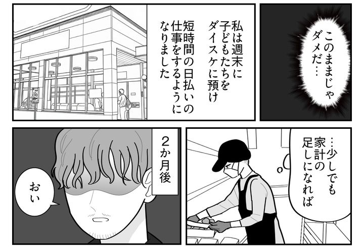 何度か短時間の日払いの仕事をしましたが、そのうち私が家を空けることをダイスケが嫌がるようになりました。そんなとき私は、以前仕事で一緒だったサイトウさんのことを思い出しました。ダメ元で連絡してみることにします。