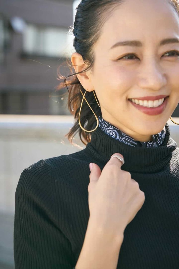 毎年冬に活躍するヘルノのダウンは6年選手。トレンド関係なく子供の送迎など防寒最重視なシーンで欠かせない存在です。膝丈まであるので最上級の暖かさ。カジュアル過ぎず上品な印象で着こなせるのも嬉しいです。ダウンが重ためなので面積の大きい白を入れてメリハリのあるモノトーンコーデにしました。撮影で出会って購入したバージュエリーのピアスが今日のポイント。金属なのに有機的な曲線で女性らしく盛れます。首元のスカーフとともに顔まわりを華やかに!