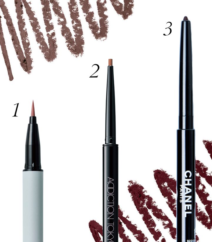 1 カジュアルに目元を引き締めるオレンジブラウン。ザ ジェル アイライナー 101 ¥3,300(限定品)/アディクション ビューティ 2 マット質感のロージィピンクで目元に甘いスパイスを。グラフィック リクイド アイライナー EX-02 ¥3,300(限定品)/RMK Division 3 目元をセンシュアルに引き締めるバーガンディは、さまざまなメイクにマッチ。スティロ ユー ウォータープルーフ N 67 ¥4,620(限定品)/シャネル