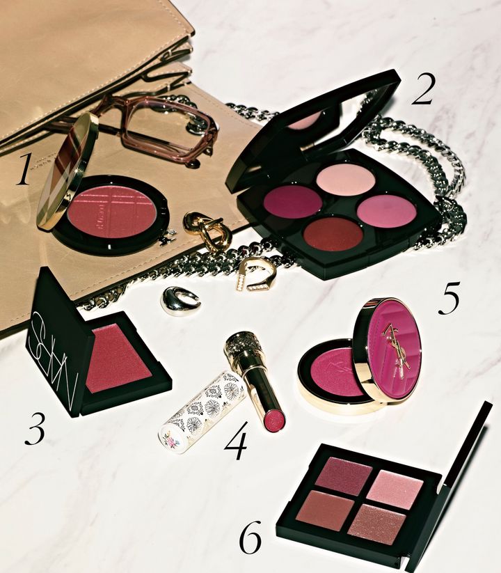 1 素肌まで美しく導いてくれるフェイスカラーは、頰やまぶたなどマルチに活躍。カラー+グロウ エンハンサー 05 ¥6,270(セット価格、2026/3/1発売)/SHISEIDO 2 シャネルのアイコンシェード“ルージュ ヌワール”にインスパイアされたマルチパレットが登場。ルージュ ヌワール コンフィダンス ¥13,750(限定品)/シャネル 3 人気のチークにラズベリーカラーが仲間入り。ブラッシュ N 909 ¥5,390/ナーズ ジャパン 4 透け感のあるモーブは、トライしやすい発色。リップスティック シアー 02 ¥4,400(セット価格)/ポール & ジョー ボーテ 5 フューシャピンクはメイクの主役に◎。YSL メイクミーブラッシュ パウダー 66 ¥8,360/イヴ・サンローラン・ボーテ 6 ネオンのようにきらめくパレット。アイスカルプト アッシー ローズ ¥7,480(限定品)/シュウ ウエムラ バッグ ¥101,200/トリー バーチ(トリー バーチ ジャパン) アイウェア ¥70,400/マイキータ(マイキータ ジャパン) ピアス ¥71,900 リング ¥756,700 イヤーカフ ¥45,200/以上トムウッド(トムウッド 青山店)