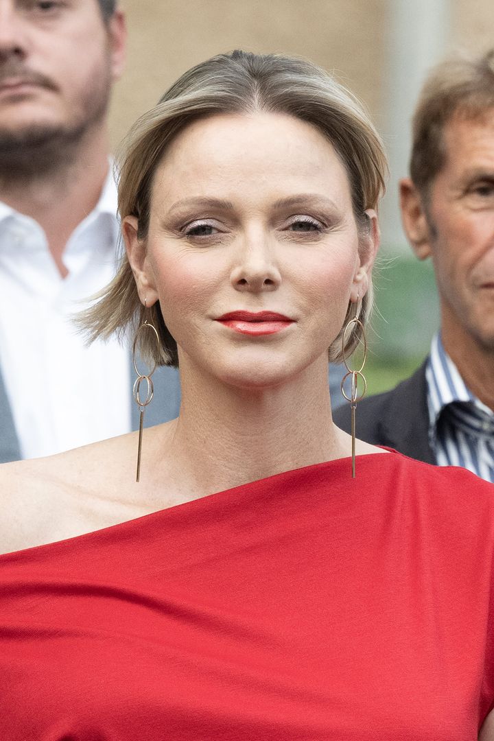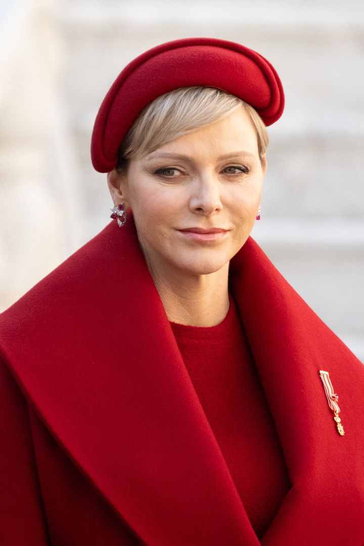 ダイヤモンドジュエリーのみならず、「グラフ」の色石ジュエリーも愛用する公妃。モナコの国旗カラー、“赤”のワントーンで登場した2023年の建国記念日では、ペアシェイプのルビーとダイヤモンドを組み合わせたイヤリングを着用。華やかなカラーコーディネートに煌めきを添えていました。