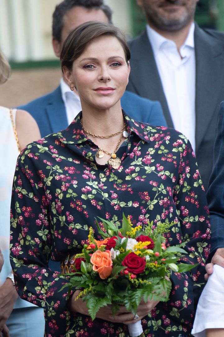 毎年恒例となっているモナコ王室伝統のピクニックでは、リラックスした装いを披露する公妃。2023年のピクニックで選ばれたのは「エトロ」のチャーム付きネックレスで、同じく「エトロ」のフローラル柄ブラウスとコーディネート。上品なボーホーシックスタイルを完成させていました。