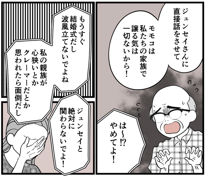 私が婚約者のジュンセイさんの電話番号をきこうとすると、義父が強い口調で制止しました。もしジュンセイさんに連絡して結婚がうまくいかなかったらどうするのか、もう式の準備も整い、籍を入れるだけなのだから我慢してほしいと言うのです……。