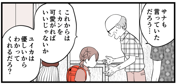 これからはミカンを可愛がるように、という義父に対して「ありえない」と叱ってくれました。