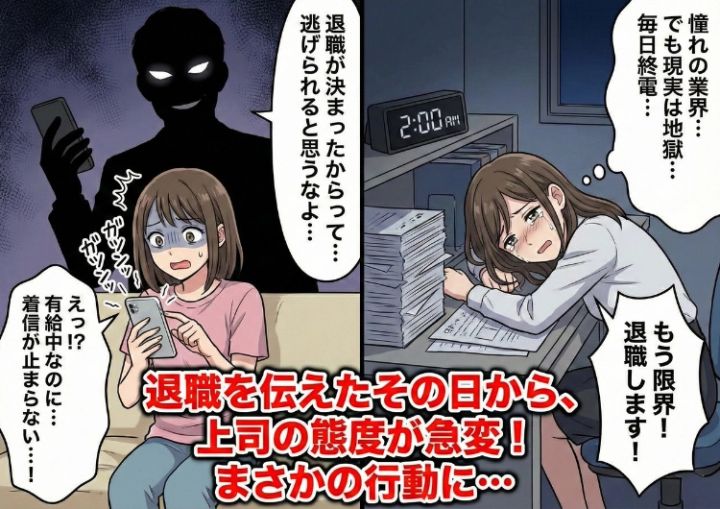 憧れだった出版業界に就職し、夢への一歩を踏み出したはずでした。しかし現実は厳しく、毎日の終電帰りと休日出勤に加え、直属の上司による理不尽な叱責が日常茶飯事となっていました。心身ともに限界を迎え、私はついに転職を決意しました。勇気を振り絞って上司に退職を伝えると、意外にもその場ではあっさりと認められました。ようやくこの地獄から解放されると安堵した私でした。が、それは新たな悪夢の始まりだったのです。