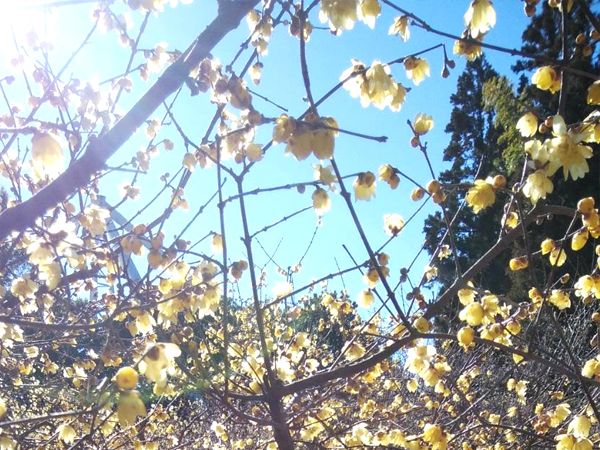 ロウバイ園の広さは結構広くて、早咲きと遅咲きが混ざってたくさん咲いていました。青い空と黄色いお花がとっても綺麗です!