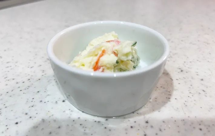 ポテトサラダにはすでに味がついているので、味つけをほとんどしなくても、しっかりおかずになる玉子焼きに仕上がりました。