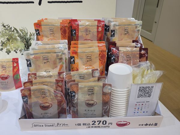 2025年11月に本格始動したばかりの、中村屋のシェフが開発したオフィス専用のスープを楽しめる「Office Stand By You」。オフィスにいながらレストランクオリティのおいしいスープを味わえるのは嬉しいポイント。ランチにもう1品ほしい、朝食代わりや残業飯としてちょっと小腹を満たしたい…というときにぴったりです。