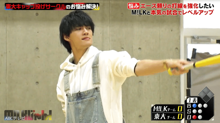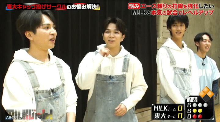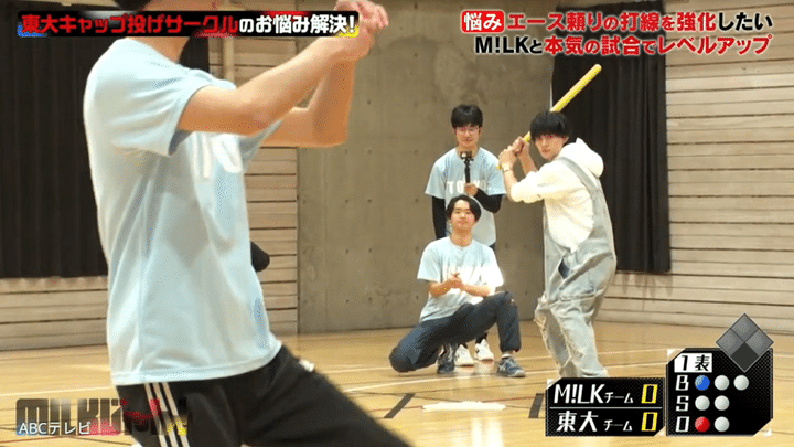 初出場ながら『NHK紅白歌合戦』を盛り上げた5人組ボーカルダンスユニット・M!LKが、東京大学の学生と本気で野球対決! 「朝ドラ」ことNHK連続テレビ小説で高校球児を熱演した佐野勇斗は、特に気合い十分で打席に立ったが……!?