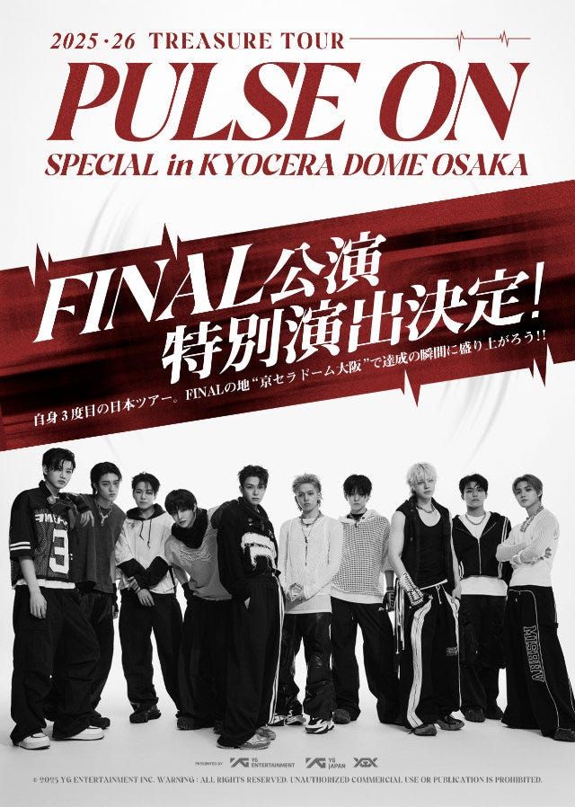 自身3度目となるJAPAN TOUR『2025-26 TREASURE TOUR [PULSE ON] IN JAPAN』の最終公演が、2026年2月10日(火)・11日(水)に京セラドーム大阪で開催。最終公演のみの特別演出を実施することが発表されている(※チケットは完売)。