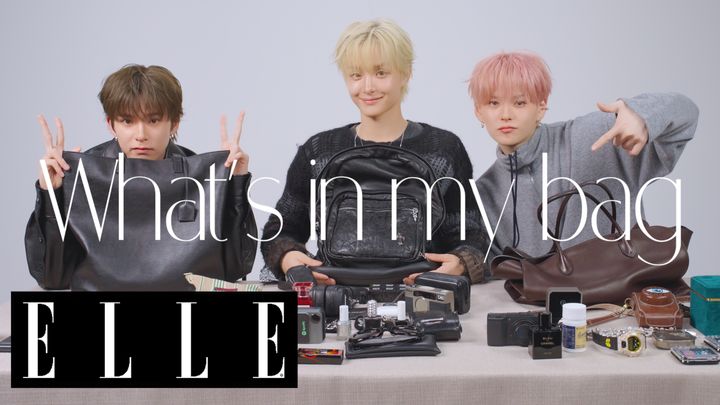 ELLE公式YouTubeの人気動画シリーズ「What's in my bag」にJIHOON、YOSHI、ASAHIの3人が登場。個性あふれるお気に入りアイテムを初披露! 動画は2026年1月28日(水)20:00に公開予定。