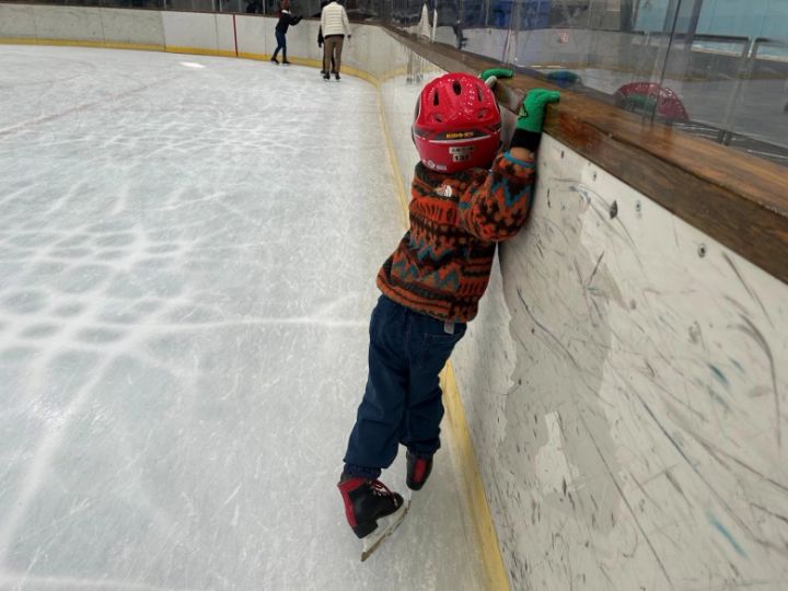 1月のひとこま、次男6歳にて初スケート。壁を持ちながら頑張っていました!