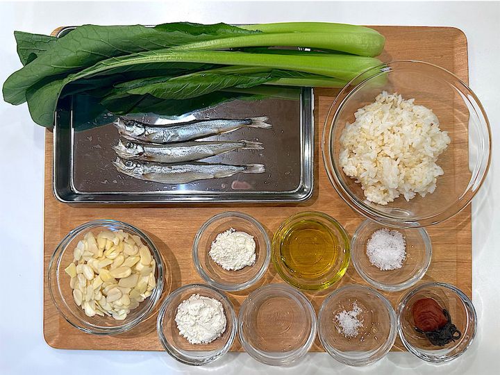 小松菜のシャキシャキとした食感が心地よく、ほどよい塩気がししゃもの旨味を受け止めてくれます。