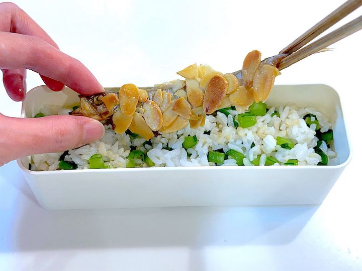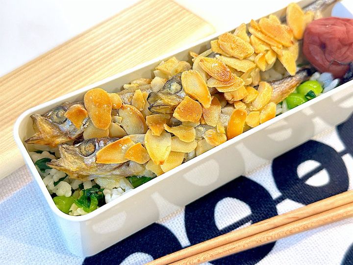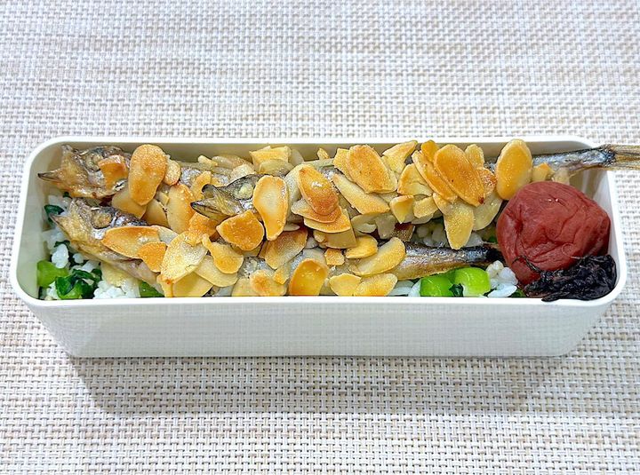 「アーモンドししゃもと菜飯弁当」の材料と作り方はこちら