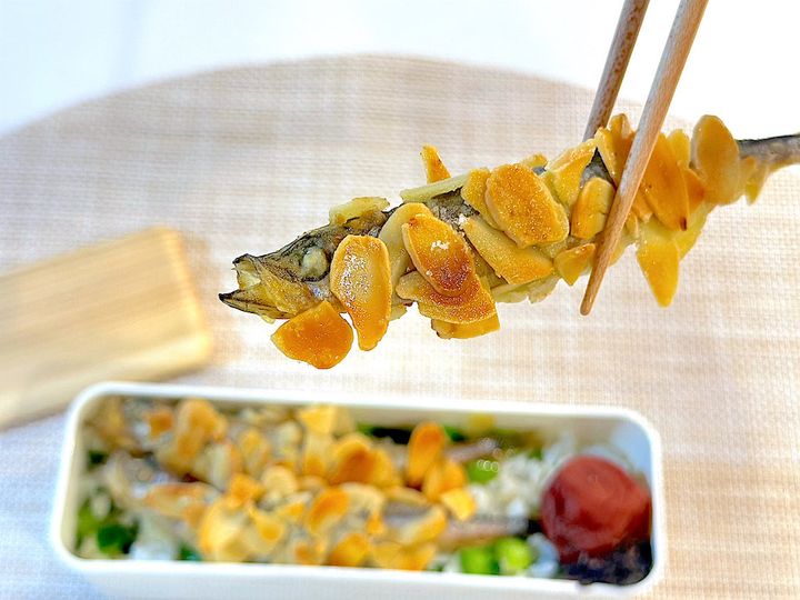 3. 【細長弁当箱に】尾頭付きししゃもを丸ごとイン!?アーモンド衣パリッパリ♡な豪快弁当作ろう【植松良枝さん直伝】