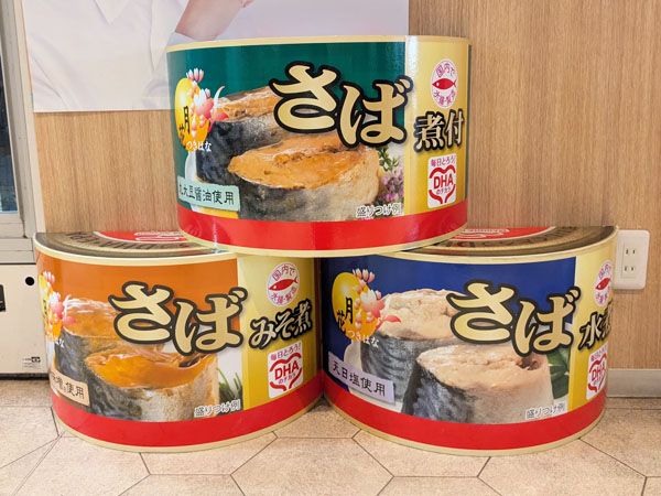 店内には大きなさば缶のオブジェが展示されているほか…