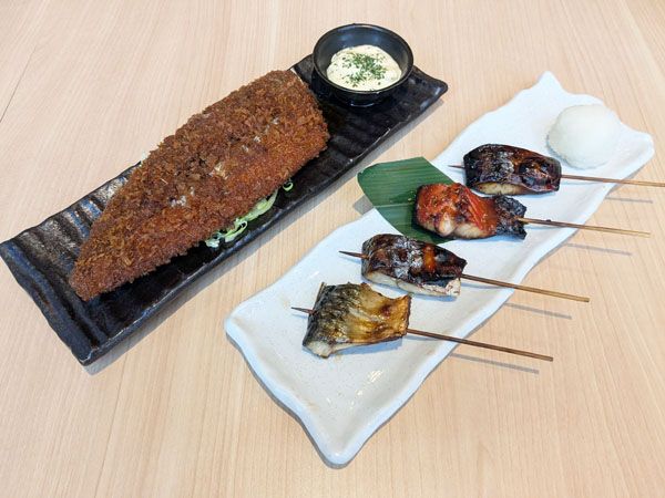 また、数量限定のさばカツ(写真奥)は、しっかりとタレがしみ込んでいて、下に敷かれたキャベツ、タルタルソースと一緒にいただきます。肉厚のさばは食べ応えもしっかりあります。