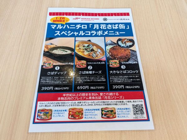 では、「月花さば缶」とコラボメニュー3品を紹介します。